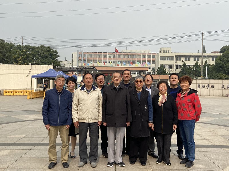 会后退休教师和微电子与控制工程学院师生在白云校区南教学楼广场上合影留念。
