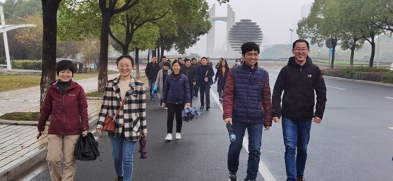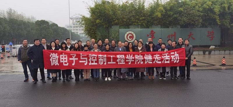 2020年11月25日中午,微电子与控制工程学院分工会在武进校区南门举办冬日健步走活动,来自电子科学与技术、大学物理部、电子信息技术实验中心、基础物理实验中心、物联网、办公室等工会小组的30多名教职工参加活动,学院党政领导亲临赛场,为工会活动加油鼓劲。烟雨蒙蒙,大家沿着香樟大道健步走5000多步,活动结束后集体在学校南门合影留念。