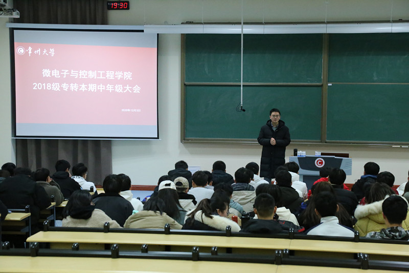 12月3日晚,学院在西太湖校区X2教室召开2018级专转本期中年级大会,2018级专转本全体同学参会,大会由2018级专转本辅导员骆明阳主持。骆明阳从家庭经济困难学生资助、人身财产安全、防诈骗、疫情防控、学习考研及心理健康等相关方面内容入手,重点介绍了考研事项,希望同学们抓住本学期最后时间,努力学习,争取通过四级考试,顺利完成学业,同时早立考研之志,以优异的成绩回报关心关爱自己的人。
