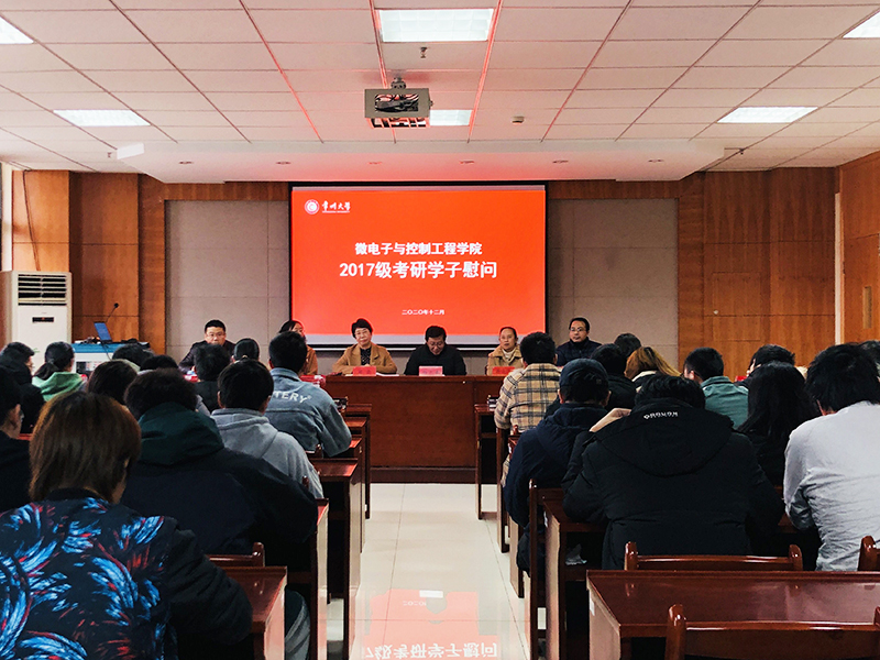 为鼓励我院2017级考研学子坚定信念,助力学生金榜题名,12月10日下午,微电子与控制工程学院在逸夫楼516开展了2017级考研学子慰问活动。院党委书记周霞、院长杨长春、副院长邹凌、院关工委副主任蒋美萍、院党委副书记韩福东、院长助理邱建华、毕业班辅导员以及2021届考研学子参加活动,活动由韩福东副书记主持。