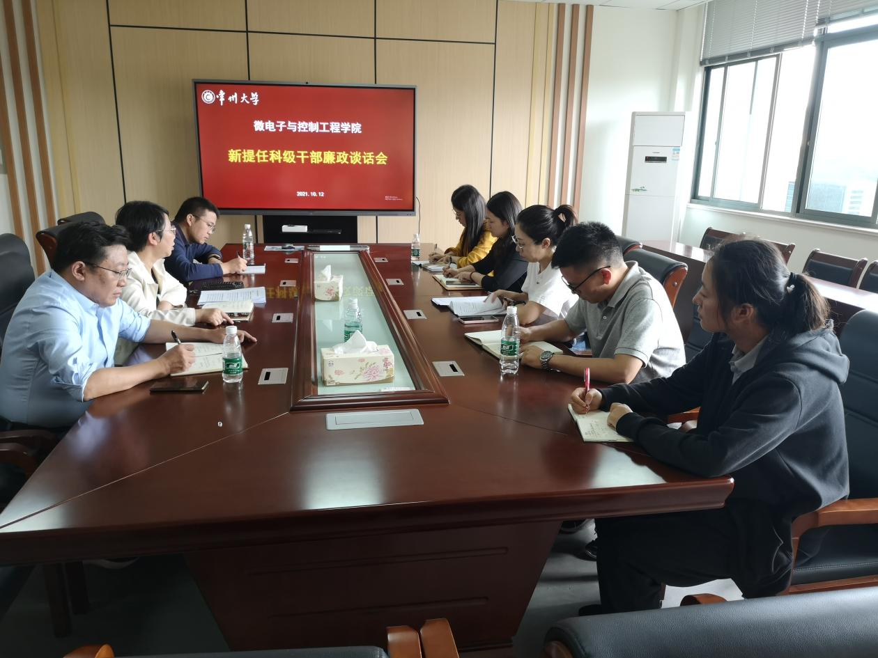 10月12日,我院在逸夫楼523会议室召开了新提任科级干部廉政谈话会,学院党委书记周霞、院长杨长春、党委副书记韩福东、学院全体新提任科级干部参加了会议,会议由周霞主持。