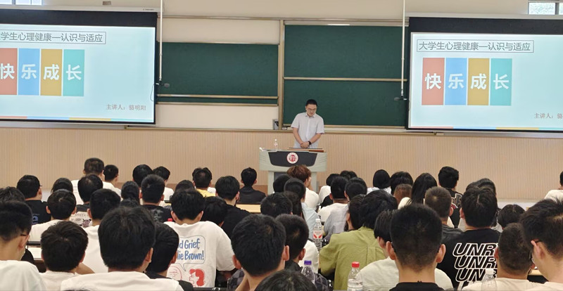 为帮助新生尽快适应校园生活,9月11日下午,学院在西太湖校区立功楼1阶开展心理健康教育主题讲座,讲座由辅导员骆明阳主讲,2025级全体新生参加了此次讲座。