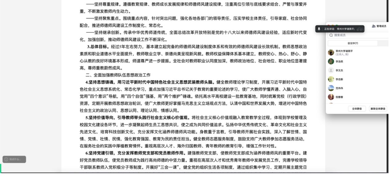 会议由系主任诸燕平主持,系部教师全员参加。会上,诸燕平强调了新时代师德师风建设的紧迫性与重要意义,全体教师需以“四有”好老师为目标,将社会主义核心价值观融入教育教学全过程。副主任李文杰随后带领大家逐条研读文件内容,重点解读了“坚持正确方向”、“尊重规律”、“聚焦重点”等基本原则,以及“课堂育德、典型树德、规则立德”等具体路径。大家认真学习了文件精神,重点领会了新时代师德师风建设的总体要求、基本原则和具体举措。与会教师积极发言,结合自身教学科研实际,交流了对“立德树人”的理解与实践思路。