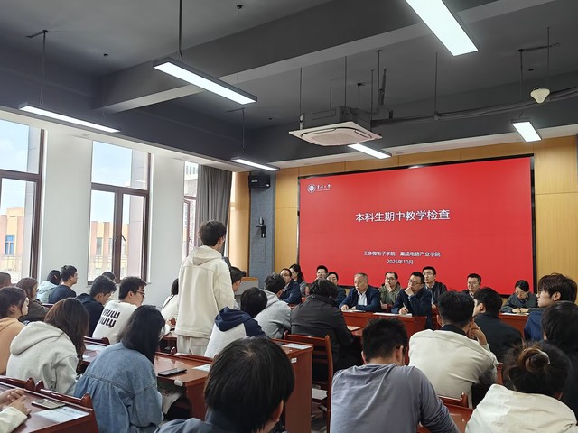 会上,各班学生代表率先发言,围绕课堂教学、实验实践、课程设置、生活条件、就业考研等方面提出宝贵建议。针对学生提出的问题,在场教师逐一耐心解答。他们表示将认真研究学生意见,优化教学计划与方法、提升教学质量;相关部门也将积极协调解决学生生活问题,改善学习生活环境。朱正伟结合当前就业形势指出,高校毕业生就业竞争日趋激烈,希望同学们珍惜在校时光,夯实专业基础,端正学习态度,主动参与创新创业竞赛等实践活动,全方位提升核心竞争力;同时强调班委要充分发挥桥梁纽带作用,精准对接同学需求,做好困难学生帮扶工作。陆生礼表示,学院将持续深化产教融合课程体系建设,鼓励学生充分利用寒暑假参与专业实习、项目实践等活动,推动专业知识从理论学习向实践应用的高效转化。
