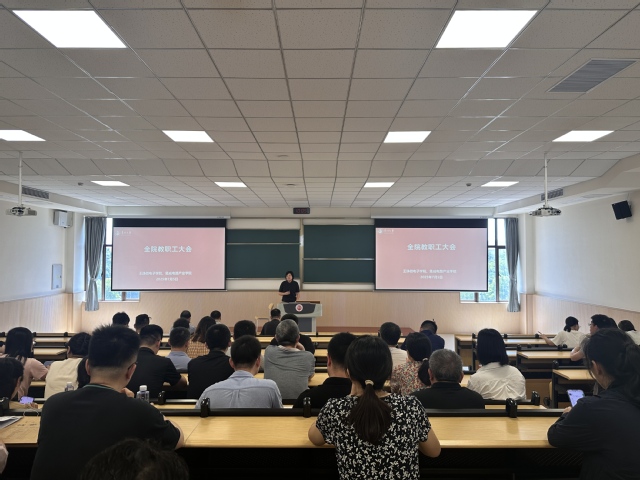7月5日上午,学院在立功楼8阶召开全院教职工大会暨全体党员大会,学院党委书记吴青玲、学术院长陆生礼、副院长邱建华、副院长徐权以及关工委同志出席会议,全体教职工参加会议,吴青玲主持会议。