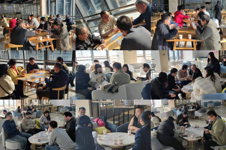 首先进行棋牌活动。老师们自由组成搭档,四人一桌,围坐在一起。老师们配合默契,战术巧妙,展现了高超的牌技和默契的合作精神。紧接着,打牌结束的老师们开始围着餐桌包饺子。饺子的形状各式各样,展示了不同的手艺。老师们一边包饺子,一边聊着天,餐厅里充满了欢声笑语。经过老师们的共同努力,一盘盘热腾腾的饺子出锅了。大家品尝着劳动成果,分享着喜悦,只见老师们喜笑颜开,其乐融融。
