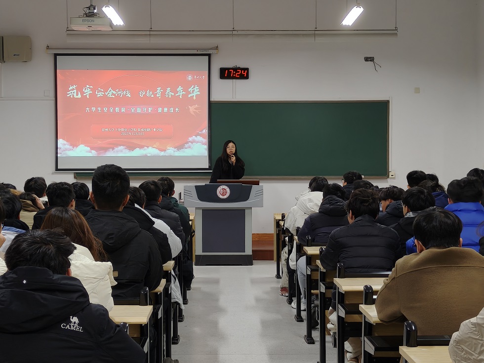 2025年12月4日,我院在立德楼115教室举办“筑牢安全防线,护航青春年华”学生骨干安全专题培训,各班级学生骨干参加培训,辅导员姜陈波担任主讲人。