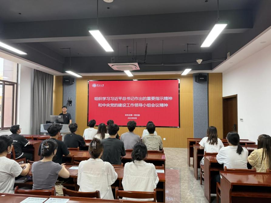 为深入学习贯彻习近平总书记作出的重要指示精神和中央党的建设工作领导小组会议精神,学院第一学生党支部于2025年9月3日在立功楼402会议室组织开展集中学习,由支部书记张永盈主持,全体党员参加。
