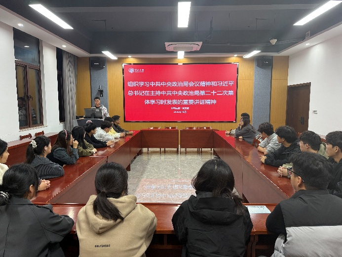 学院第一学生党支部于2025年10月15日在立功楼404组织召开专题学习会议,集中学习中共中央政治局会议精神及习近平总书记在主持中共中央政治局第二十二次集体学习时的重要讲话精神。会议由党支部书记张永盈主持,支部全体党员参加。