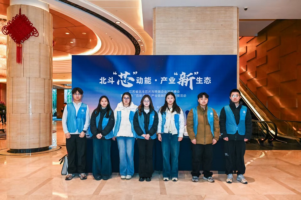 近日,江苏北斗芯片与终端企业对接峰会暨常州市“百场千企”产业链融链强链对接活动举行,活动主题为“北斗‘芯’动能 产业‘新’生态”。研究生党支部组织志愿者队伍,在研究生党员王淼茹的带领下,全程参与活动志愿服务工作。