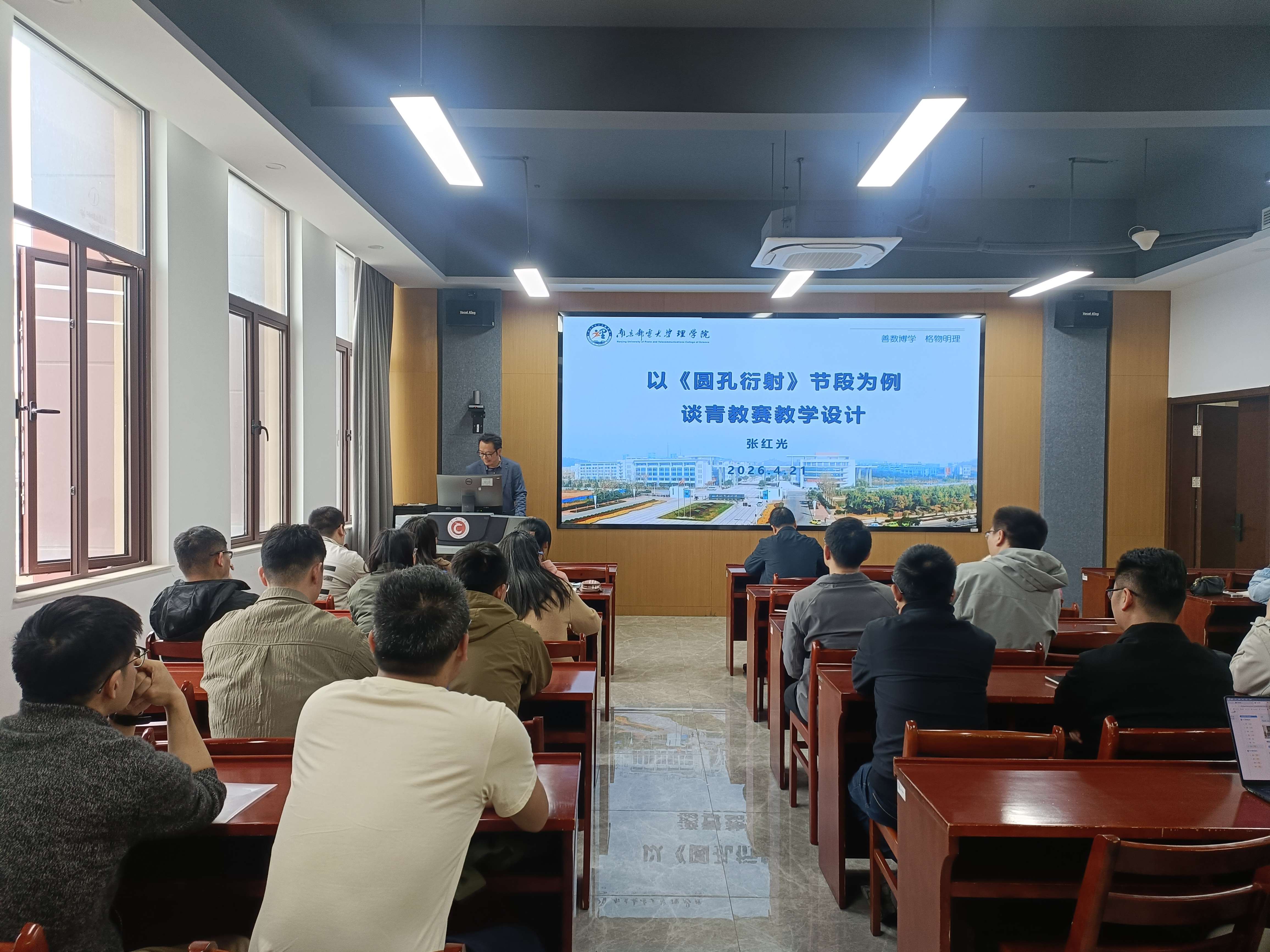 张红光副教授以《以圆孔衍射为例谈青教赛教学设计》为题,围绕青教赛备赛与教学设计提升和与会教师展开深入交流,结合自身丰富的参赛经验与获奖实践,系统拆解了青年教师教学竞赛的核心要求与教学设计思路。他以“圆孔衍射”这一经典教学内容为范例,从选题立意、逻辑架构、重难点突破、教学方法创新、思政元素融入、课堂呈现等关键环节入手,细致讲解了如何将一堂课做精、做深、做亮。