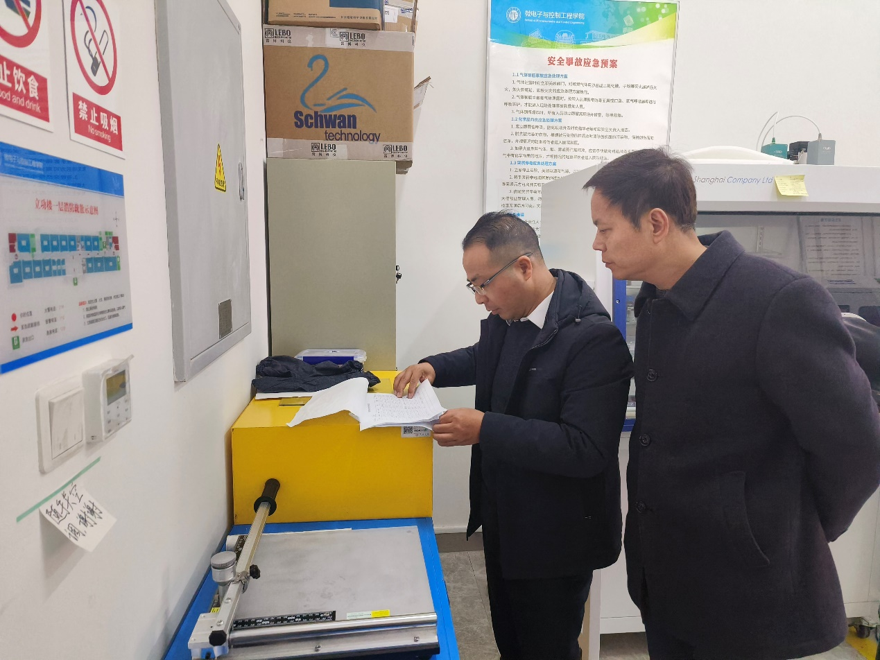 为落实《省教育厅关于开展全省高校春季安全检查工作的通知》和校安全生产委员会要求,3月10日,学院实验室安全检查督察组对全院各类实验室进行新学期安全检查,督察组由学院实验室安全分管副院长邱建华带队,实验中心主任陈志军陪同,实验中心全体实验员参加巡查。 督察组根据省教育厅和学校相关要求,结合学院实验室安全规律特点,重点围绕新学期实验室安全运行准备情况,对危险化学品管理、气体钢瓶使用、消防设施配备、电气线路安全等关键环节进行逐项检查。督察组检查过程中,督察组听取了部分实验室负责人关于新学期实验室安全管理工作计划的汇报,要求各实验室结合教学科研实际需求,进一步加强师生安全教育培训,完善实验室安全应急预案,提升全员安全防范意识和应急处置能力。 邱建华强调,新学期是学院教学科研工作全面启动的关键时期,确保实验室安全责任层层压实;对检查中发现的风险隐患,须立行立改,形成“排查—整改—复查”闭环管理机制,全力保障新学期实验实践教学活动顺利开展,为学院高质量发展保驾护航。 |