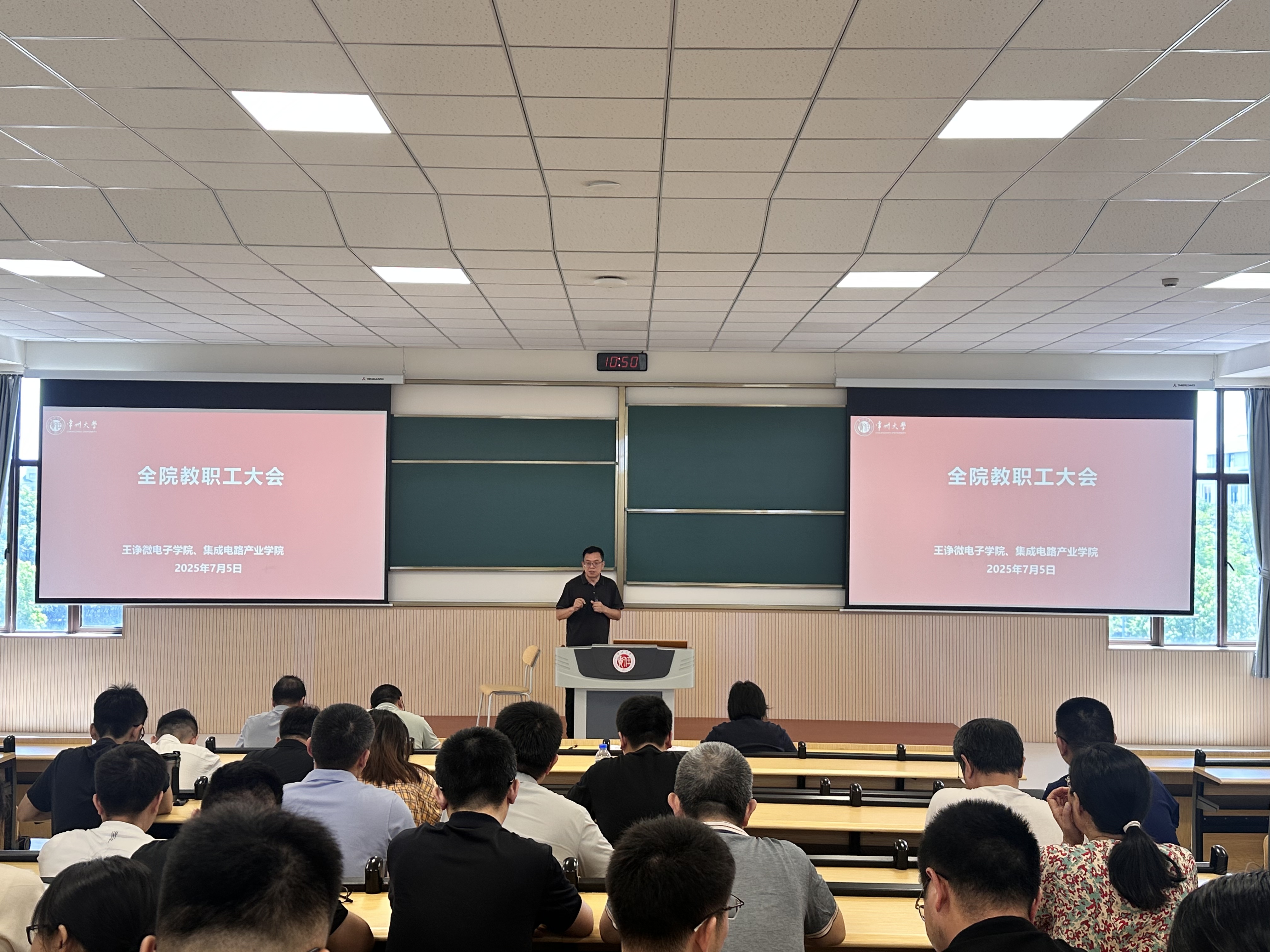 吴青玲强调,要聚焦学院核心竞争力提升,着力推进优质教育教学资源与教材课程体系建设,深度调研并精准对接地方集成电路产业发展需求,强化专业领域行业标准的学习与落地,以深化校政企协同合作为抓手聚力打造高水平人才创新高地。同时,要重点加强集成电路科学与工程交叉学科建设,整合校内优势资源深耕化合物半导体特色领域,联合地方政府共建创新联合体,创新推行拔尖创新班与校企联合教学模式,全面提升人才培养质量,为应对百年未有之大变局提供坚实的人才支撑与智力保障。